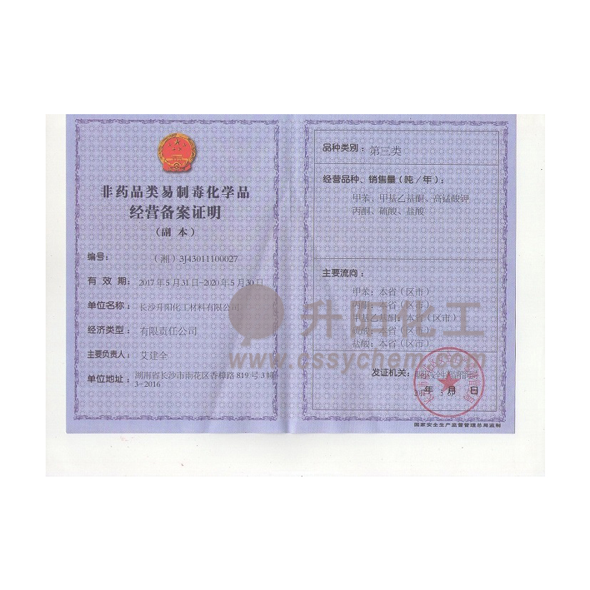 長(zhǎng)沙升陽(yáng)化工材料有限公司成立于2009年,是一家已經(jīng)擁有10年化工原料經(jīng)營(yíng)歷史的企業(yè)。我們本著“服務(wù)至上,以誠(chéng)為本”的原則,為廣大的新老客戶提供最優(yōu)質(zhì)的產(chǎn)品、最便捷的服務(wù)。歷經(jīng)10多年的積淀與發(fā)展,現(xiàn)已成長(zhǎng)為湖南省頗具規(guī)模的專(zhuān)業(yè)化學(xué)品服務(wù)供應(yīng)商之一。?公司集貿(mào)易,科研,倉(cāng)儲(chǔ),物流為